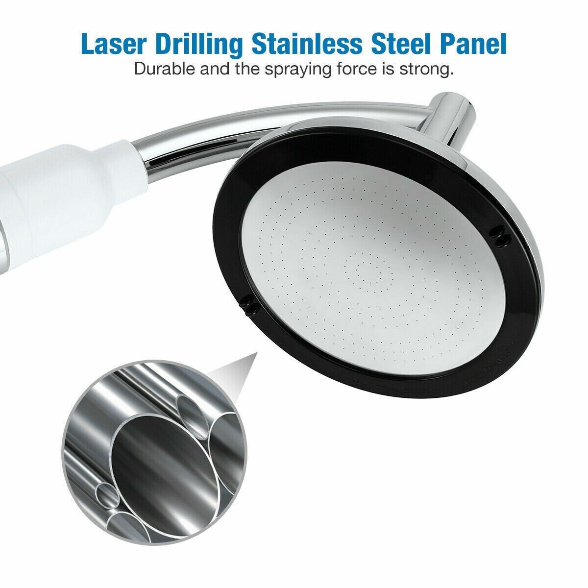 The Large Shower Head is designed for high pressure and water-saving efficiency. It is easy to install and is a suitable replacement for existing shower units. Constructed from ultra-thin stainless steel and finished in polished chrome, it offers a modern look. The shower head includes a swivel joint for adjustable spray angles and features anti-clog rubber jets for easy cleaning.