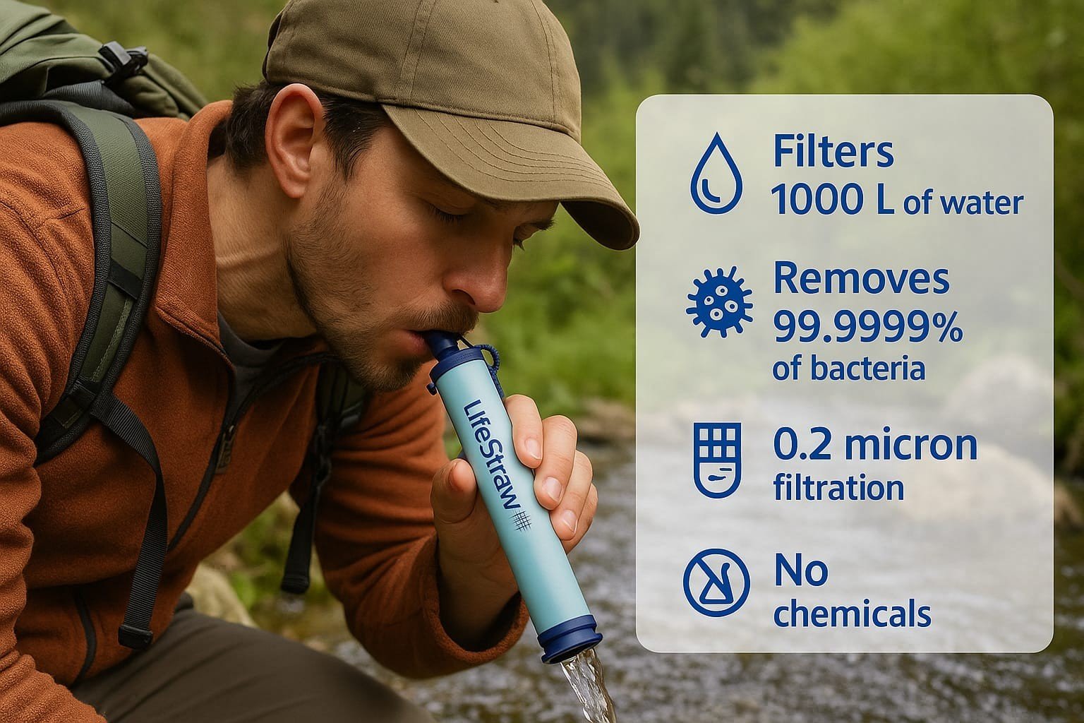 – Effectively purifies water, ensuring safe drinking in any environment.