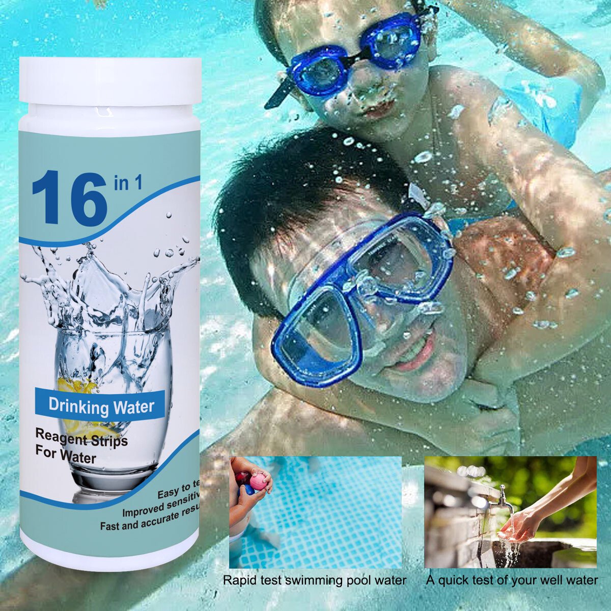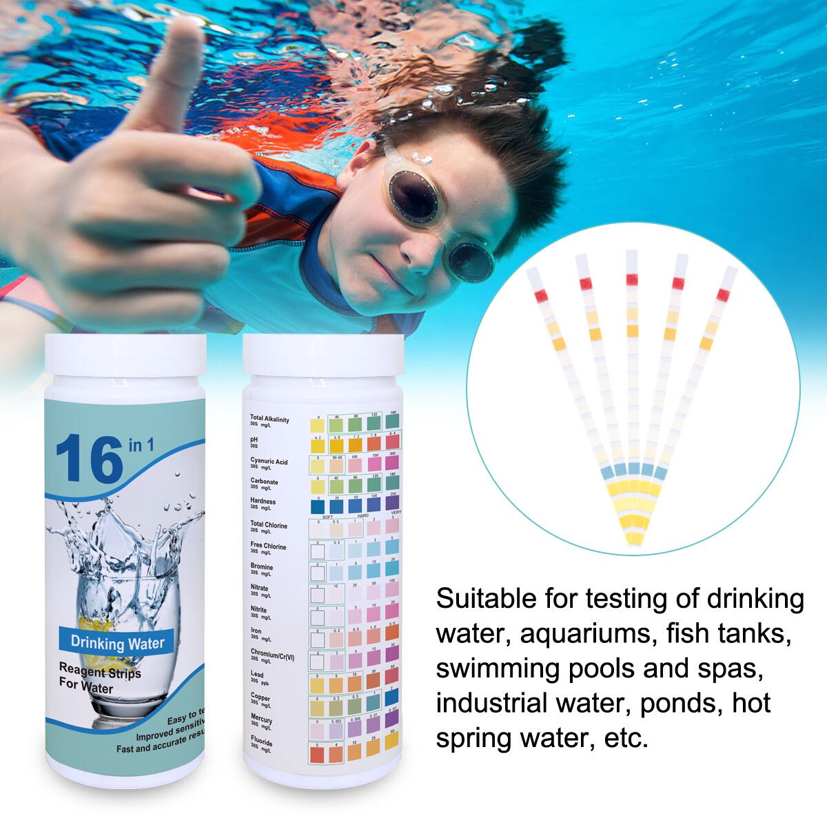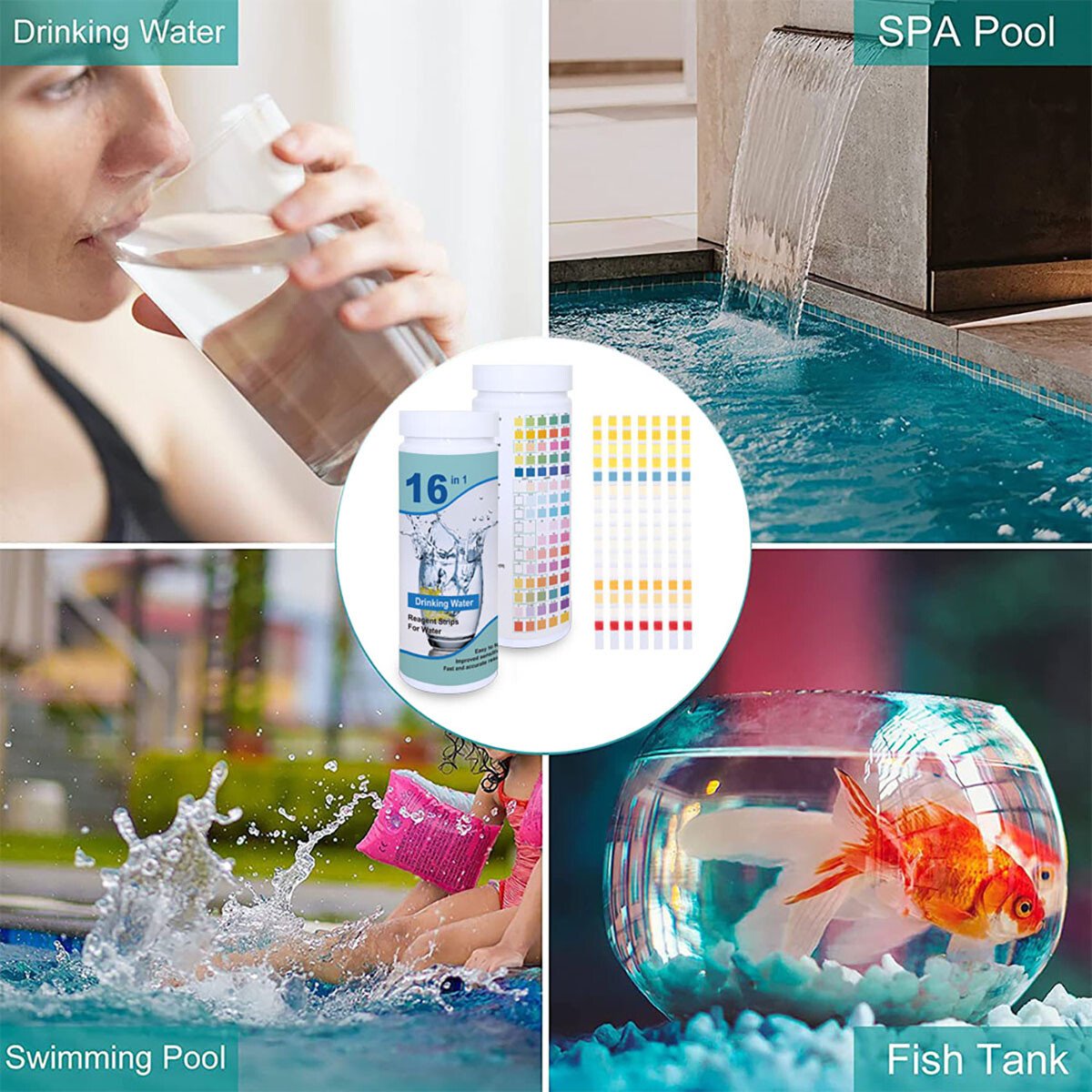 – Comprehensive 16-in-1 testing for various water quality parameters.