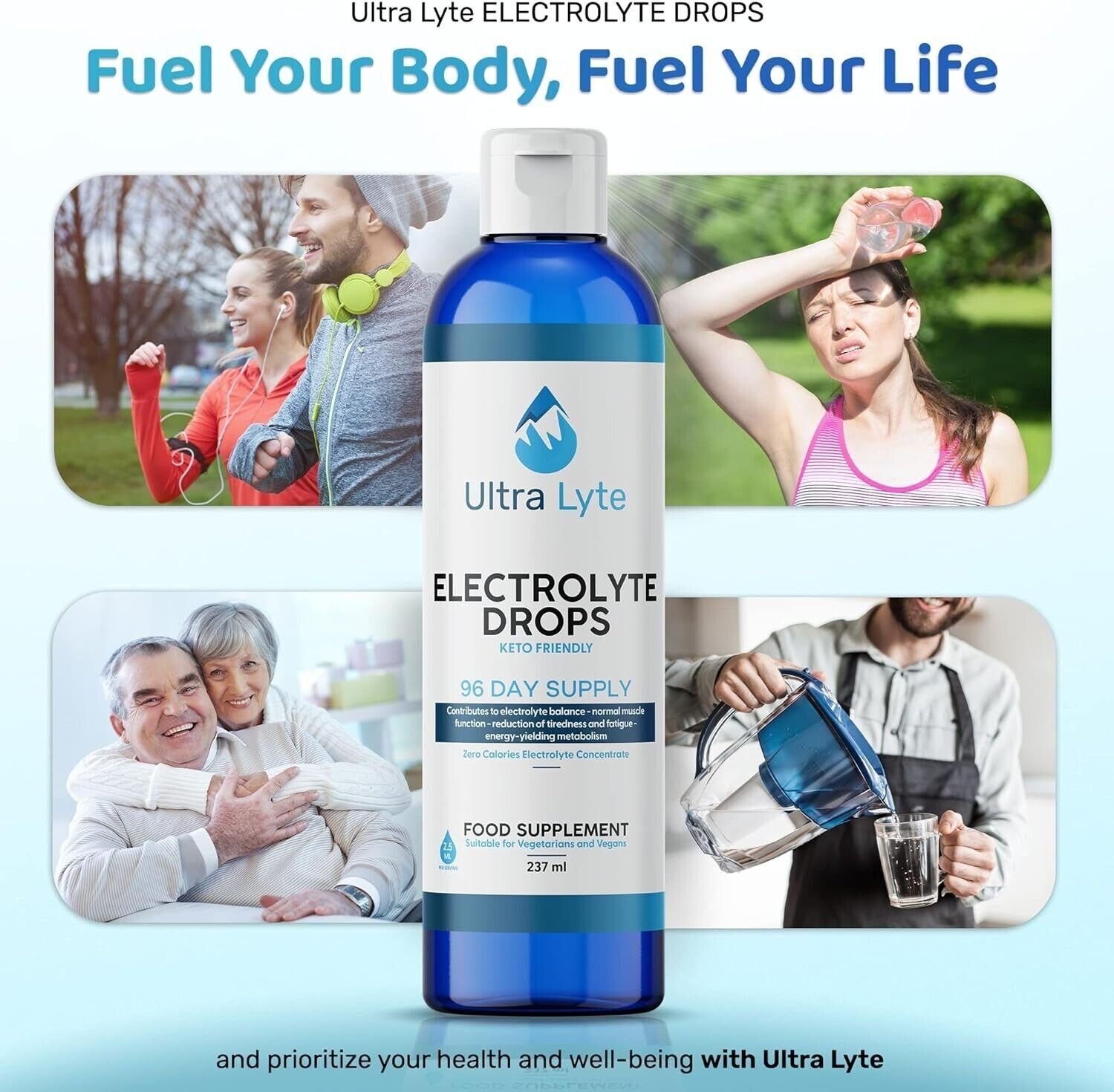 Ultra Lyte Keto Electrolytes contains essential minerals such as magnesium, potassium, and sodium to improve hydration, prevent muscle cramps, and support overall health. The product is zero calories, making it suitable for those monitoring their calorie intake while maintaining hydration. The concentrated formula is designed to replenish electrolytes lost during exercise or dehydration, supporting optimal energy levels and recovery.