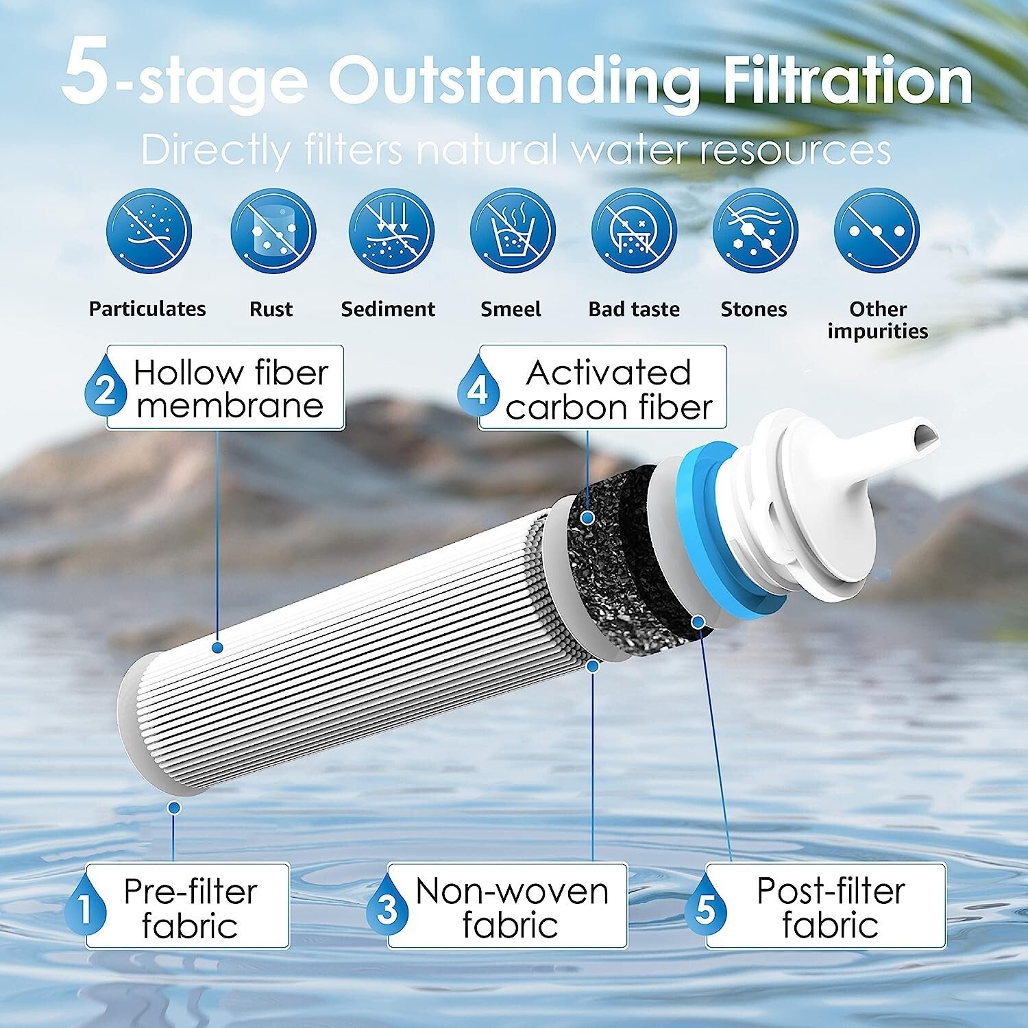 This product is suitable for various outdoor activities such as hiking, camping, and travel, as well as for emergency preparedness during natural disasters. The design eliminates the need for an extra syringe to backwash, simplifying the process and saving space. Backwashing is necessary to maintain the filter’s condition; this can be done by blowing air through the mouthpiece or shaking out excess water. The filter features 0.1-micron hollow fiber technology, which prevents protozoa from passing through while allowing water to flow freely, ensuring the water filtered through the straw is clean and safe.